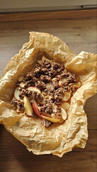 Granolový koláč 🥧🍎 🔍Na 2 porce potřebujete 🥣 50 g ovesné vločky 🌾 150 g jablka 🍏 Kakao 1 čl 🍫 Banán 45 g 🍌 Čekankový sirup @vilgain Po vychladnutí tvaroh nebo ricottu, skořici, perníkové koření Postup vidíte ve videu, pekla jsem na 170 °C asi 18 minut, ale každému peče jinak, tak prostě jablka budou napůl měkká a granola na povrchu křupavá... 👩🍳⏱️ Podávejte s tvarohem, ricottou nebo jogurtem smíchaným s proteinem 🥛🍦#kalorickydeficit #laskakjidlu #zmenazivotnihostylu #mysletjinak #kvalitnijidlo #krasnetelo #drobenkovykolac #vlocky #jablkovykolac #podzim🍁 #sacharidy