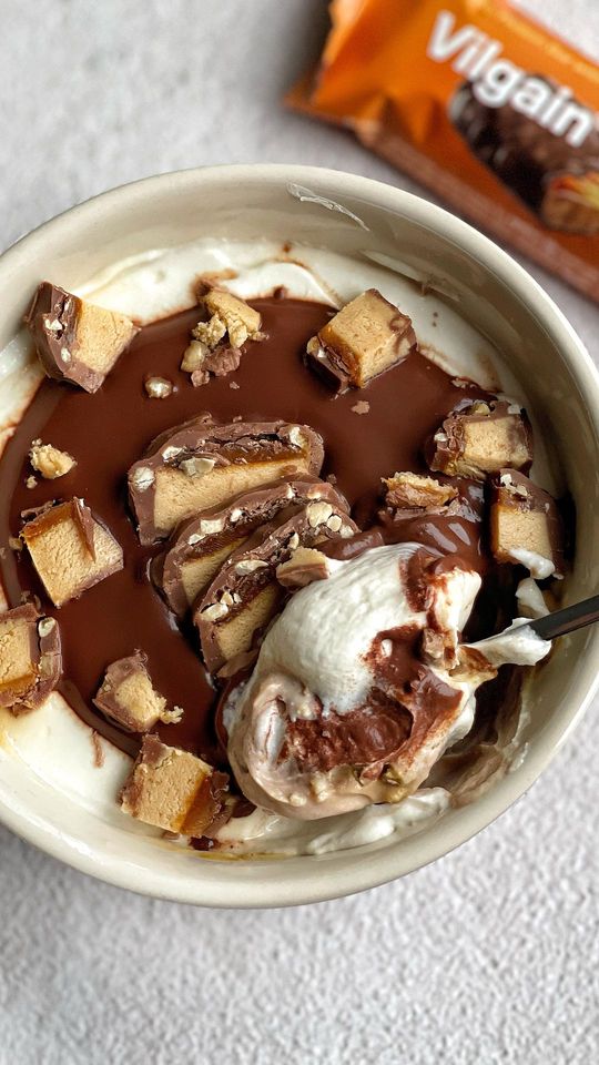 Milchschokolade (Zucker, Kakaobutter, Vollfett‑Trockenmilch, Kakaomasse 36 %, Emulgator: Rapslecithin, Vanille) 20 %, Milchprotein19 %, hydrolysiertes Rinderkollagen (Rind), lösliche Rübenfasern, Feuchthaltemittel: Glycerin, getrocknete Milch fettfrei, Karamellsirup 6 %, Erbsenproteinisolat, Kakaobutter, Erdnüsse 5 %, Erdnusscreme , Kokosnussöl, getrocknete Milch Vollmilch, Honig, Kartoffelstärke, Emulgator: Rapslecithin*, Salz, natürliches Aroma, Süßstoff: Steviolglykoside.