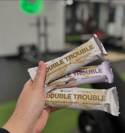 Double Trouble Protein Bar – Zweischichtiger Haselnussriegel mit Schokoladenüberzug, 29% hochwertiges Eiweiß, ohne Konservierungs- und Farbstoffe