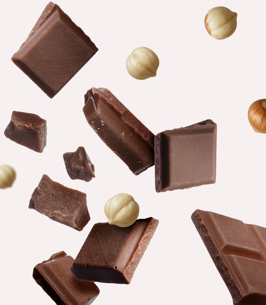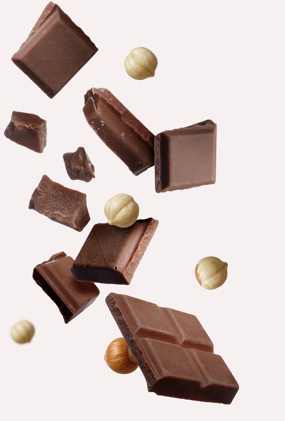 Tapiokafaser 76,5 %, Haselnüsse 8,5 %, Zucker, Kakaopulver 3 %.